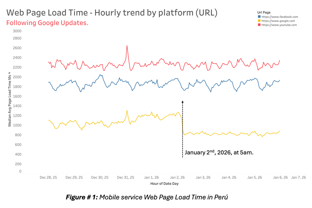 As part of a preliminary analysis, I reviewed hourly median page load time trends across several LATAM markets, comparing periods before and after January 1st, 2026.